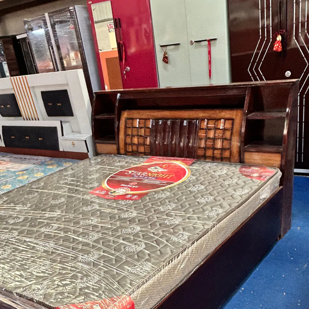 Designer Queen Size Bed in Premium Sheesham Wood – Walnut Finish